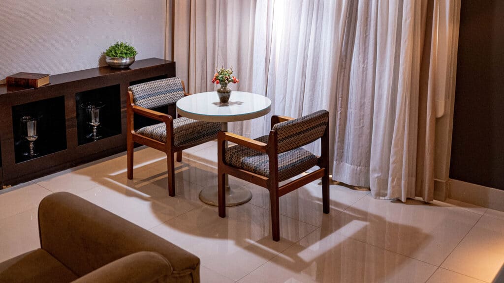 Café da manhã: Pode ser servido no apartamento, com todos os itens embalados individualmente, ou então no salão, que estará com uma quantidade de hóspedes reduzida e um maior espaço entre as mesas.